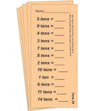 A number of sets for younger children are "color coded." Some teachers present all the levels with an exercise set, while others prefer to present all the blue (two-digit) exercises, progress to the pink (three-digit), and culminate with the green (four-digit).