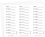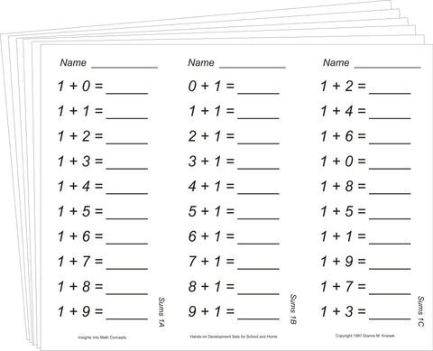 Thirty exercise sets for students to calculate basic addition facts with addends from 1 - 10. Exercise sets include both sequenced and random addends. May use with Montessori or commercial manipulatives.