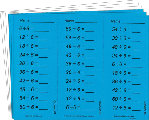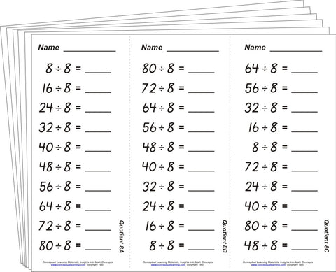 Thirty exercise sets for students to calculate basic division facts with divisors from 1 - 10. Exercise sets include both sequenced and random quotients. May use with Montessori or commercial manipulatives.