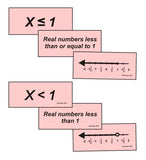 Verbal, algebraic, and number line expressions depicting all positive and negative values including fractions. ncremental introduction of continuous positive equalities and inequalities, including fractions. Younger students may do as match, while older student do abstractly and use "match" as a check. Students often do two exercises at a sitting.